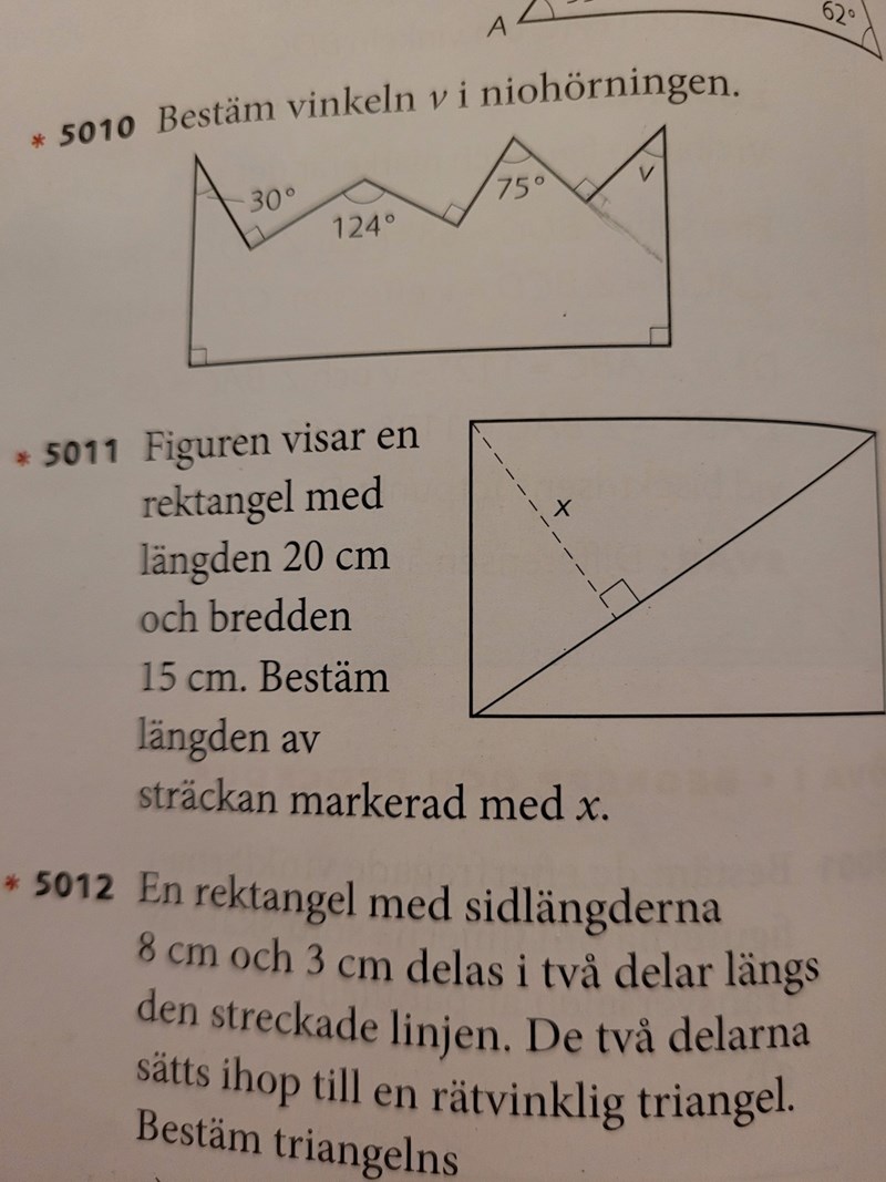 Louis skrev:Alla trianglarna är likformiga. De har alla vinklarna v (du får bestämma vilken vinkel som är v), 90-v och 90 grader.