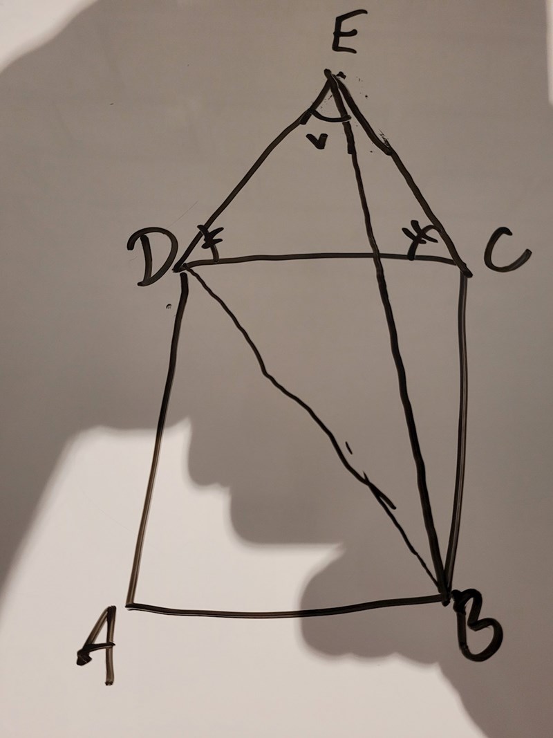 ABCD är en kvadrat. Punkten E utanför kvadraten är vald så att CDE är en liksidig triangel. Bestäm vinkeln BED.