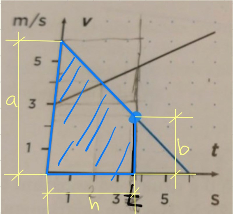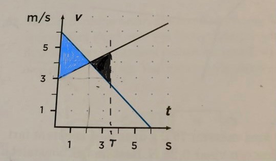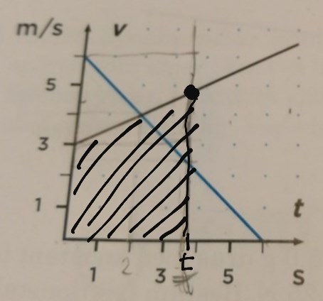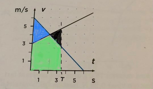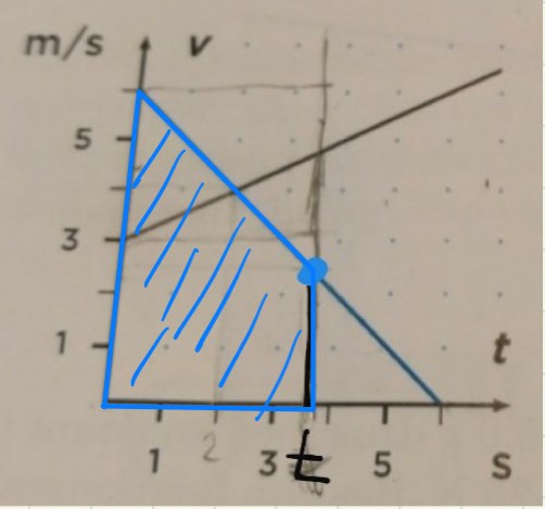 Det blåa grafen där strecket drogs ser ut att ha en area på 2,5t och svarta ser ut att ha en area på t*(4,6-3)/2