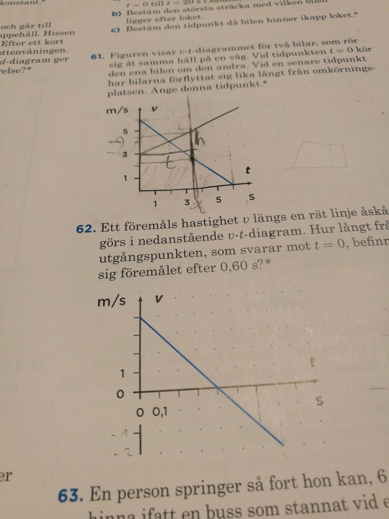 Okej men hur upptäcker jag då bilarnas areor är samma vid en viss tidpunkt på grafen? Jag provade att räkna ut arean under grafen för blåa bilen och fick det till 18 m och den svarta bilen fick jag det till 12,25 m. Deras areor är ej detsamma här.