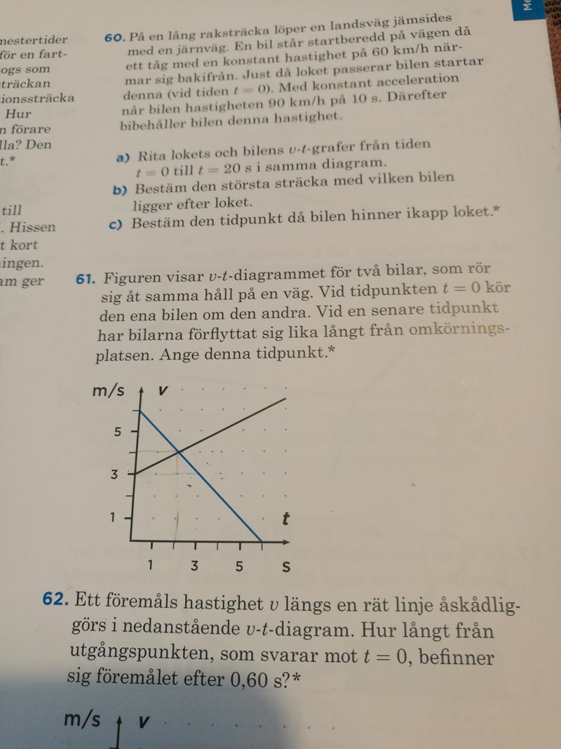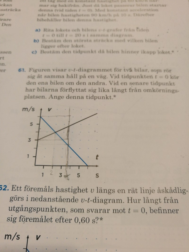 Lös sedan ut t och stoppa in värden för bilarnas acceleration och begynnelsehastighet. Kan man ej göra så istället?