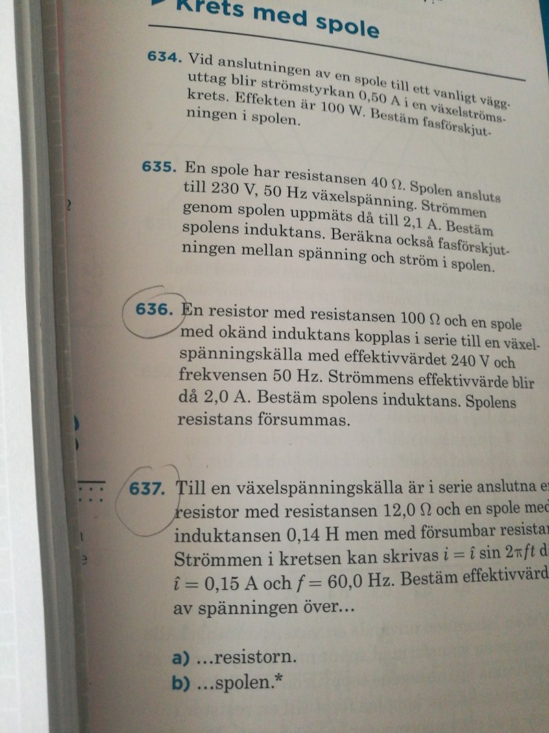 Det är övningsuppgifter om avsnittet "Krets med spole", så det är avsnittet som man ska studera först.