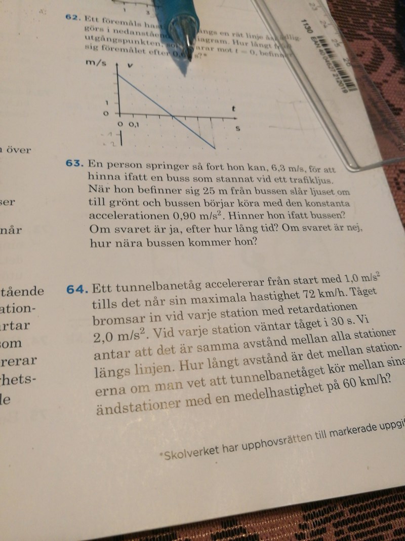 Detta ska vara lika med m/s, vilket ger oss ekvationen