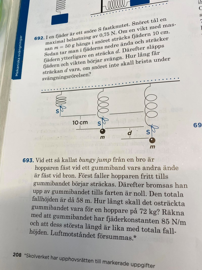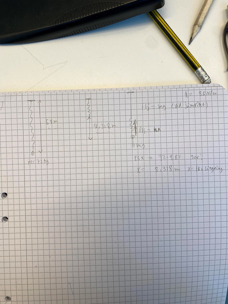 Antag tex att det ospända gummibandet har längden , hur lång blir då "fjäderutsträckningen".