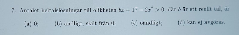 Skulle någon kunna hjälpa mig med denna uppgift? Jag har löst den men förstår inte hur jag ska tänka på svaret. Hur vet jag att det finns heltalslösningar? Det kan ju vara decimaltal och noll heltalslösningar?