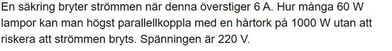 Svaret är 5, vet redan att något är fel då jag inte använder informationen 60W. Hur går man tillväga?