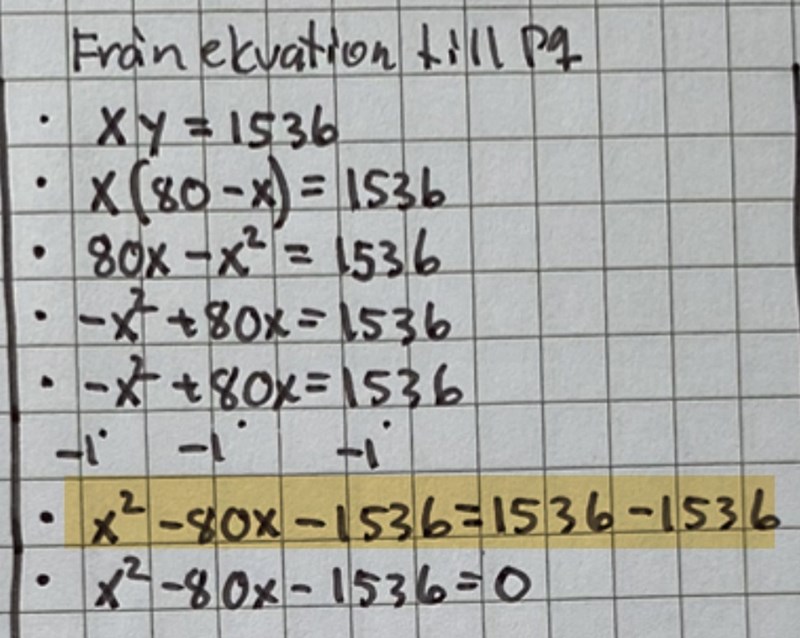 - Först därefter bör du samla alla termer på ena sidan av likhetstecknet.