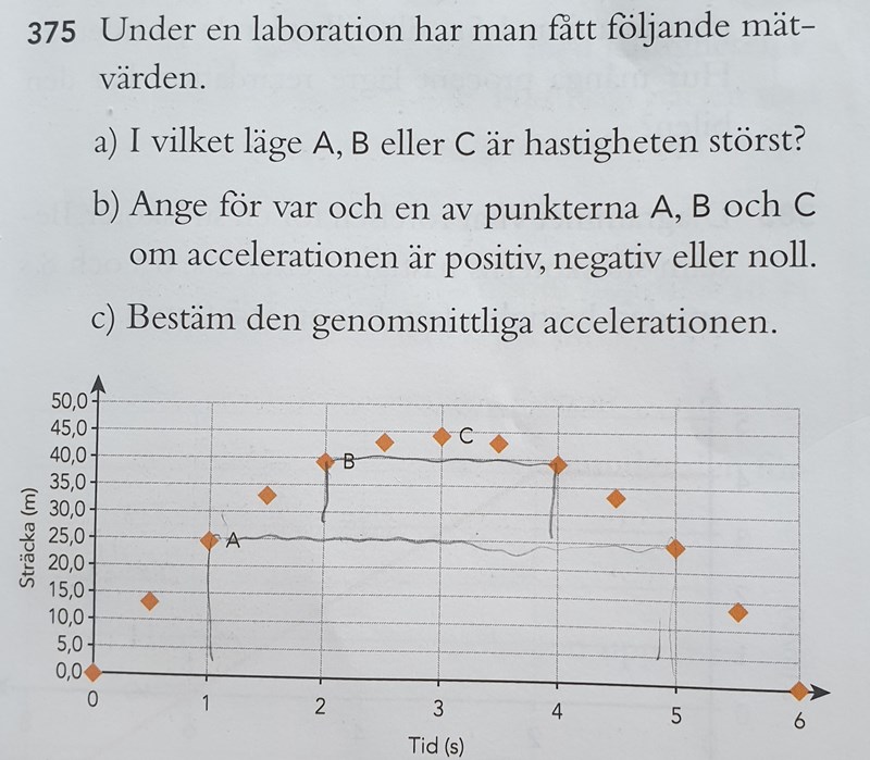 Jag får arean under kurvan till ca 175 sedan förstår jag inte vad man ska göra, jag vet dock att man kan använda sig av medelaccelerationsformeln