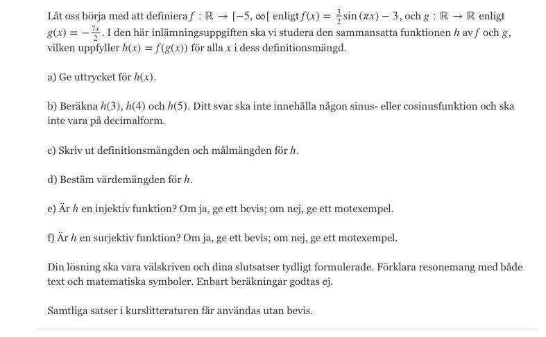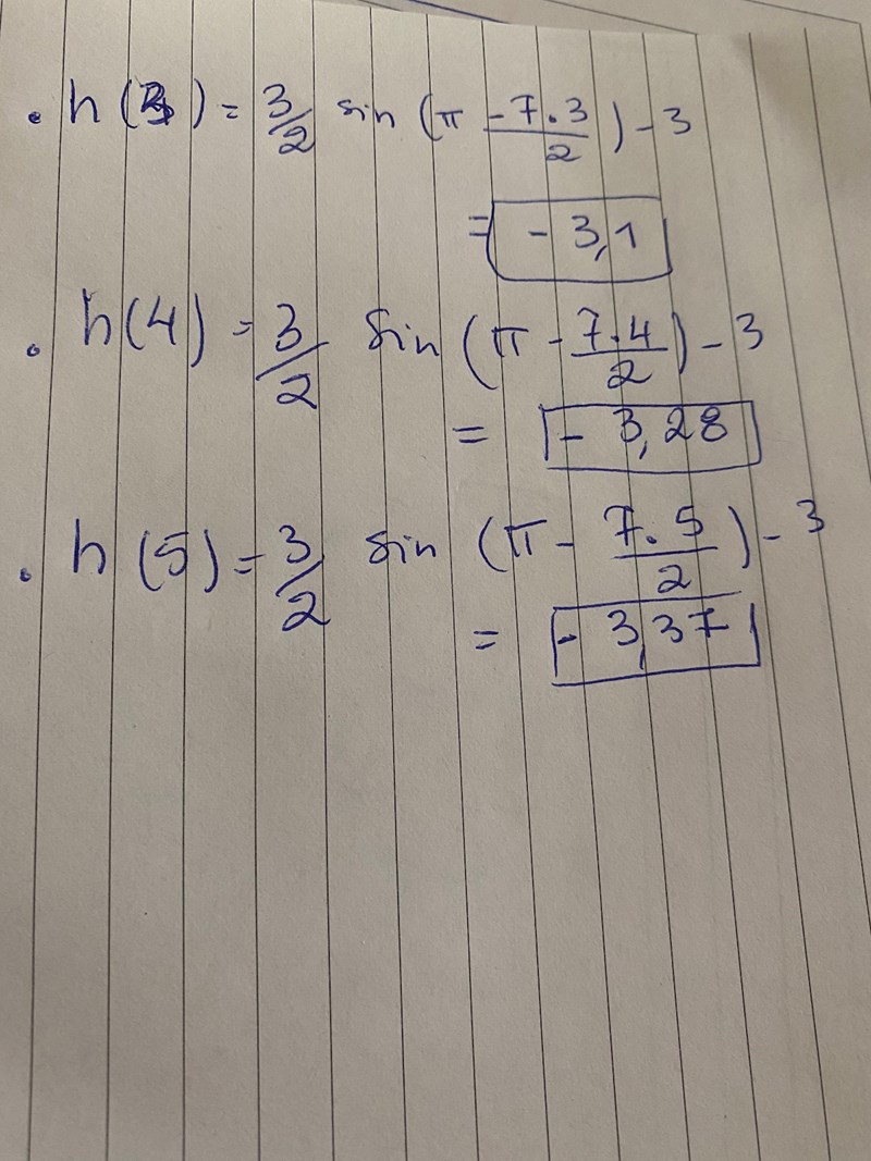 Argumentet som du stoppar in i funktionen h ska ligga innanför sinusfunktionen, dvs , osv