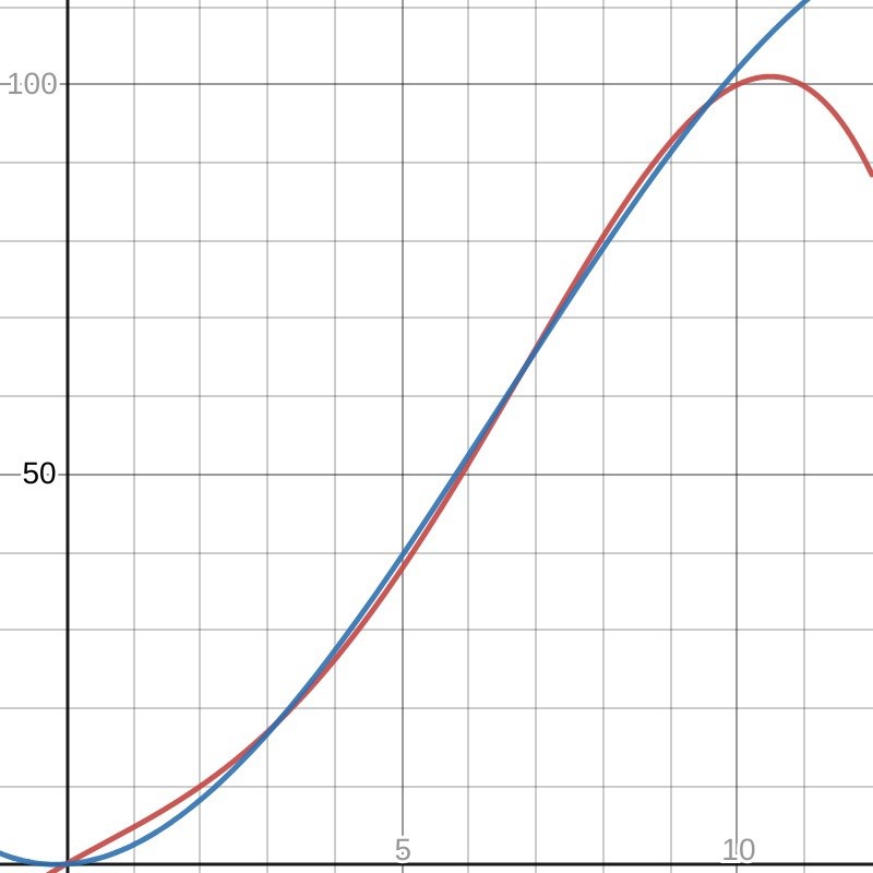 i SA så får jag -0.021x^4+0.31x^3-0.49x^2 + 4.9x = 100