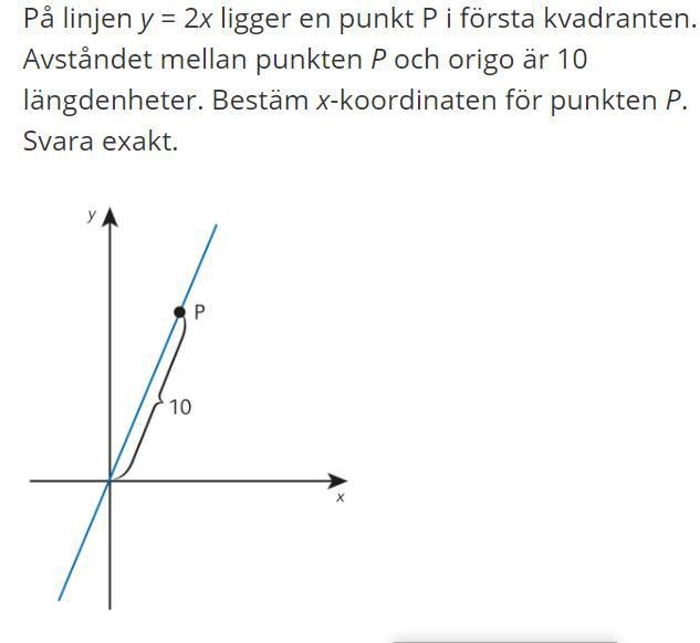 Vi vet att första punkten som går igenom origo har koordinatsystemet (0,0). Tänker mig att P har koordninaterna (x,y). Får då upp men efter det kommer jag inte vidare. Facit säger att koordinaterna för P är (x, 2x) men hur är detta möjligt?