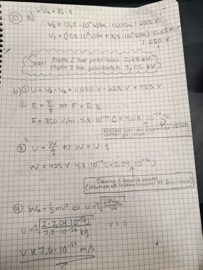 Får fel svar på en uppgift och lyckas inte identifiera vad jag gör fel. Enligt denna video (33min 16s, https://youtu.be/bDB4Rzv9vwM?si=p-1_i7rJj5zM6FcQ) ska svaret vara 7,6*10^(4)m/s, men för någon anledning får jag det till 7,6*10^(-22)m/s.