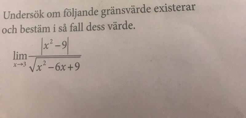 Och när x är mindre än 3: -(x+3)(x-3)/-(x-3)=(x+3)=(3+3)=6