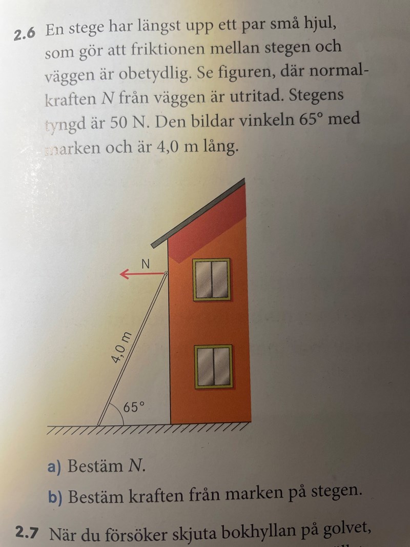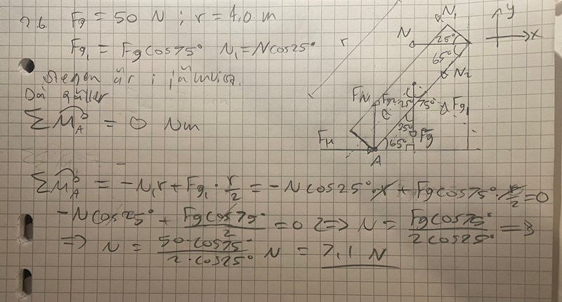 N = 25/tan(65) = 11,65 vilket avrundas till 12 N