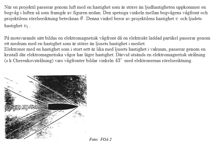 v1 är vågfrontens hastighet, v är projektilens hastighet.