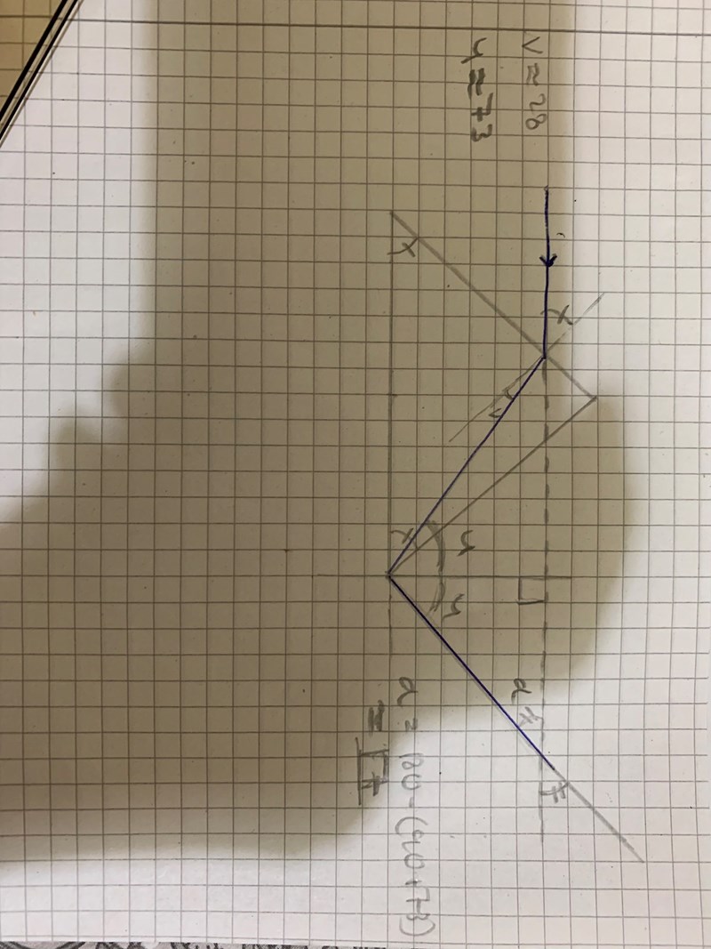 Ja exakt, det ska totalreflekteras därifrån, min ritning var inte perfekt haha. Det jag inte förstår är "Beräkna vinkeln mellan den infallande och utgående ljusstrålen." vad menas med vinkeln mellan dem?