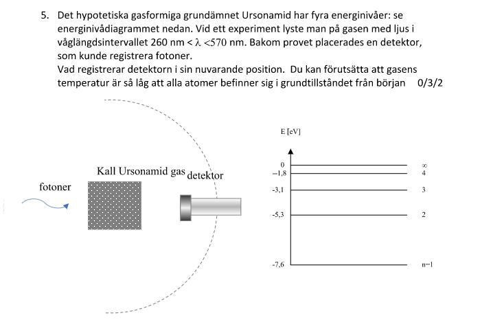 Kan du räkna ut vilka våglängder mellan 260 nm och 570 nm som absorberas av gasen?