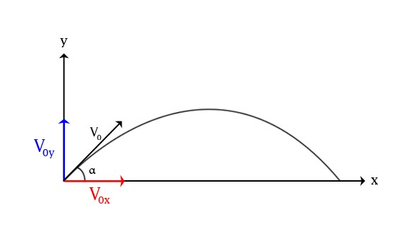x = v0xt (jag väljer koordinatsystem så att x = 0 vid utkast (t = 0) och så att marken ges av y = 0)