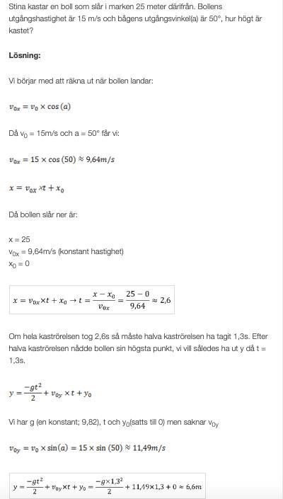 Jag har lite svårt att förstå vilken formel man tar och om man ska fortsätta ta någon formel efter det som i denna uppgift där har dom börjat räkna när bollen landar sen halverar det och sedan räknar högsta punkt hur ska jag veta om jag direkt kan räkna ut i högsta punkt eller om jag behöver räkna fler saker innan jag kan räkna den ???