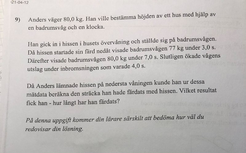 sedan har jag räknat ut kraften under de 7 s då det blir 80 x 9,82 = 786 N, mer har jag ej kommit på.