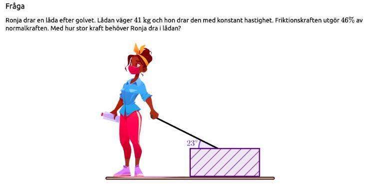 Fick rätt på det nu. Tänkte inte på att normalkraften blir mindre då hon även lyfter med en kraft i y-led. Tack för hjälpen och det snabba svarat!