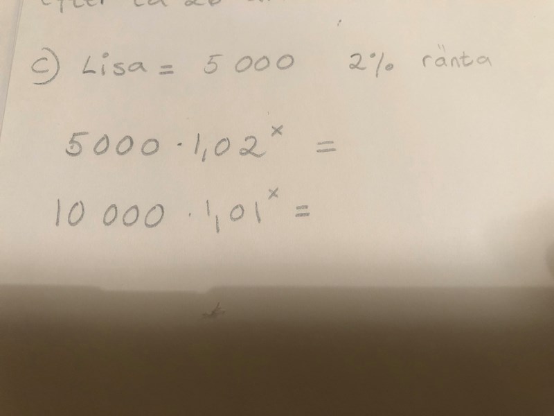 Sätt in värde du har fått fram i ekvationen 1,02x=2.1,01x och kolla!
