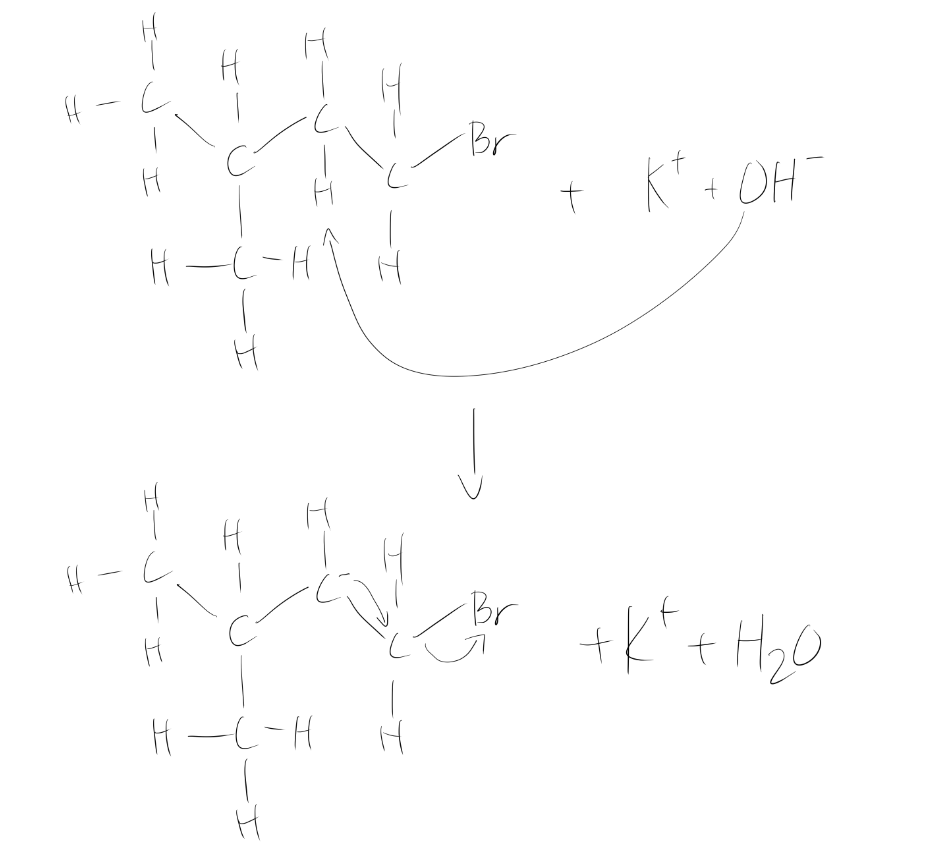 Hej! Har lite problem med en fråga där 1-brom-3-metyl-butan ska bli 3-metyl-1-buten med hjälp av värme och KOH! Väldigt osäker på hur baser kan få igång reaktioner. Tänker att det är något sådanhärt? Att de istället för att bildar C+ som syror bildar C- för att aktivera reaktioner?
