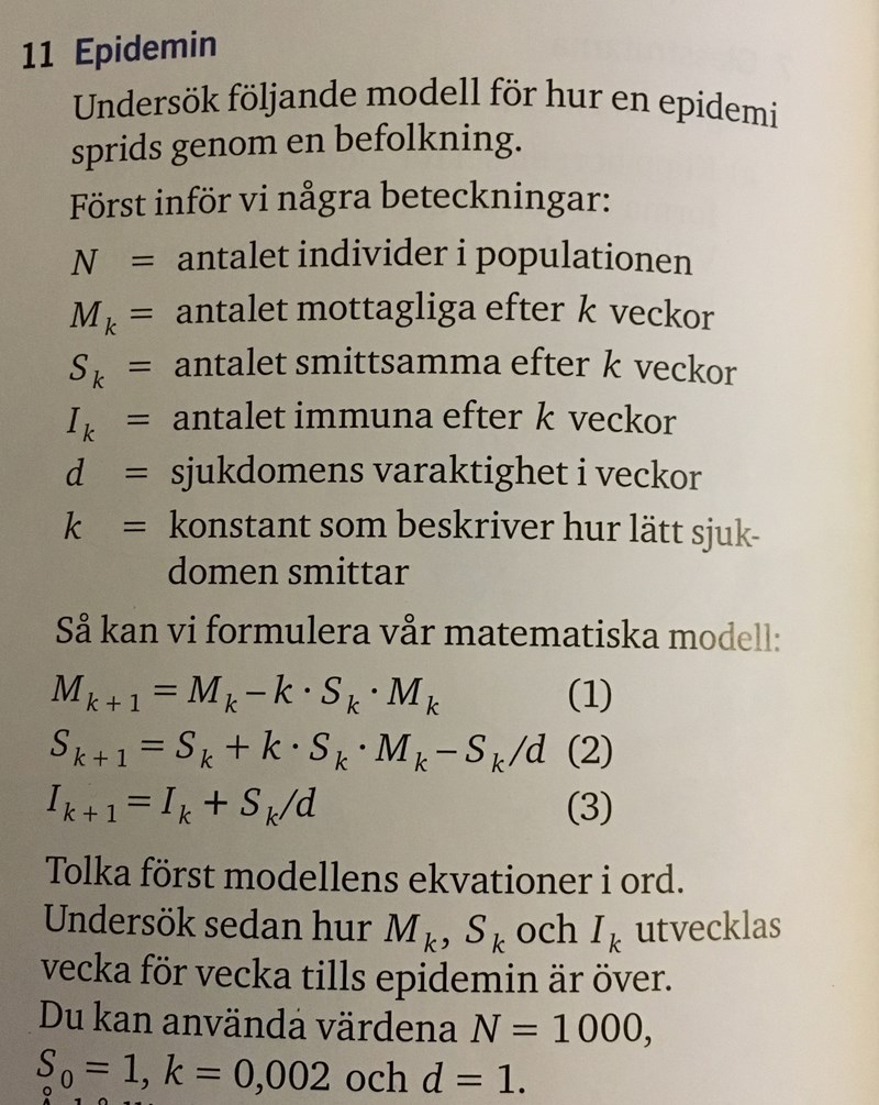 (3) Formeln beskriver antalet immuna efter k + 1 veckor.