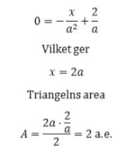 Då vet vi koordinaterna för triangelns hörn: (0,0), (0,) och (2a,0) och vi kan räkna ut arean.