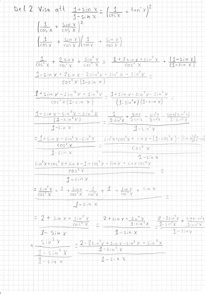 Uppgift: Visa att (1+sin x)(1-sin x) = ((1cos x)+ tan x)^2
