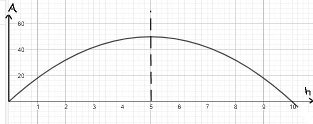 När du vet att maximal area uppstår för h=5 kan du räkna ut denna area.