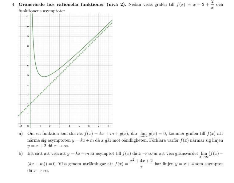 b) är asymptoten. Vad är då ? Vad händer när ?