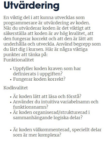 Du har skrivit någon kod, antar jag? Den ska du nu utvärdera, tydligen, utifrån de kriterier som står upplistade där.