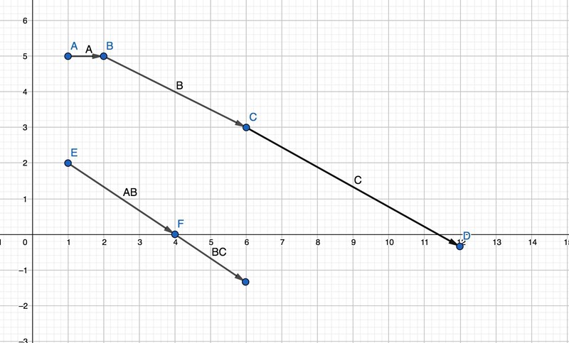 Visa att punkterna A=10B=4-2C=6-103ligger på en rät linje genom att beräkna koordinaterna för vektor ABBC
