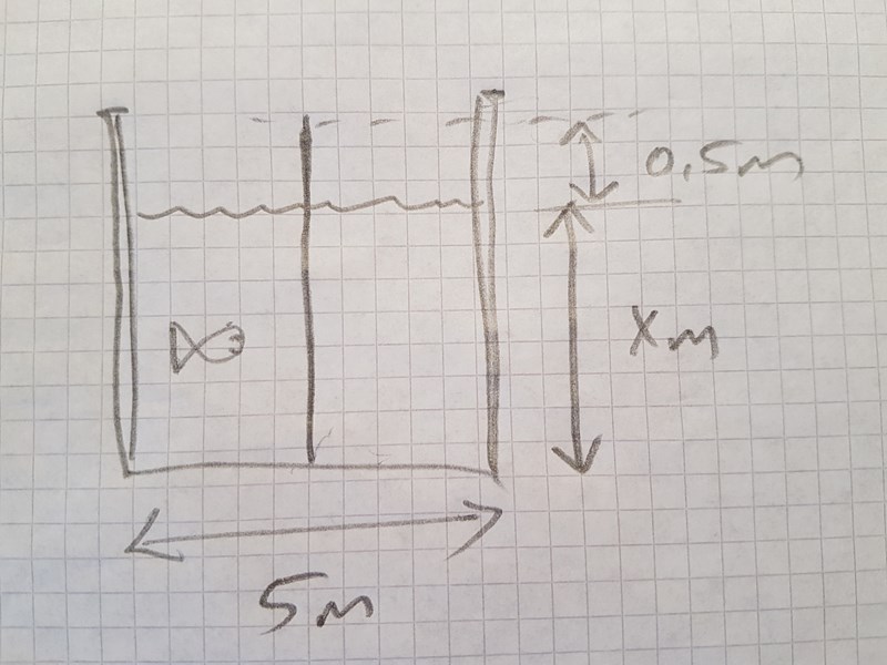 hur långt kan det vara när brunnens bredd är 5 meter.