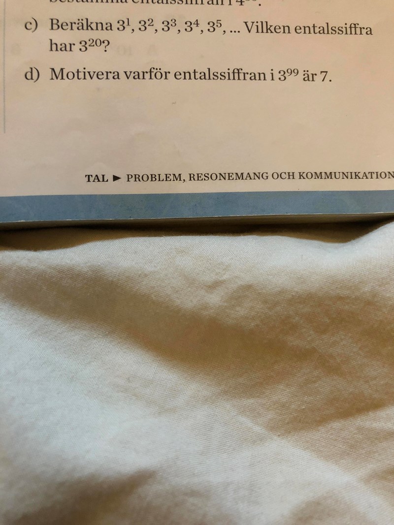 Hur ska man utan att räkna kunna bestämma entalssiffran i 3 upphöjt i 20