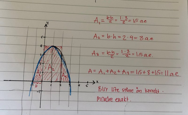 När jag sen ska dela upp arean i endast rektanglar, hur gör jag då? Tycker de är svårt att bestämma eftersom Kurvans luftning är så skarp, blir ju liksom så mycket area "över"