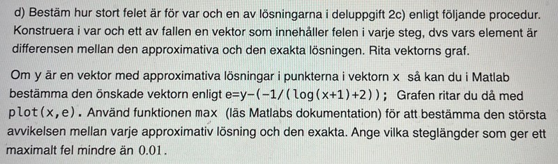 har genomfört euler stegmetod för 4 olika steglängder och plotat alla samt den rätta funktionen i en o samma graf. Hur kan jag göra för att du ta fram denna vektor vars element är skillnaden mellan den approximativa o exakta läsningen?