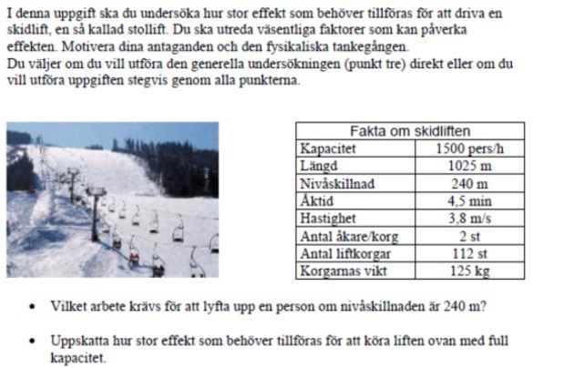 Uppskatta hur stor effekt som behöver tillföras för att köra liften ovan med full kapacitet