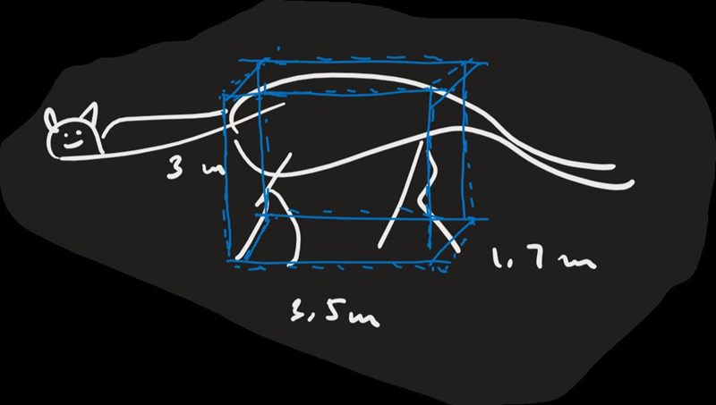 Jag hade nog sagt fyra personer plus en extra för att kompensera för svans och hals.