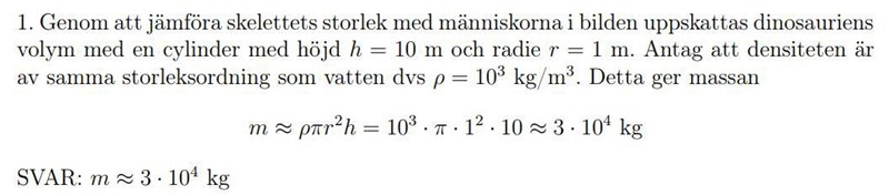 Skillnaden i volym mellan ett rätblock och en cylinder känns ganska försumbar i förhållande till osäkerheten i andra antaganden man gör, så det är nog inget att hänga upp sig på. (Men visst, håller med om att en cylinder nog passar formen på en dinosaurie lite bättre.)