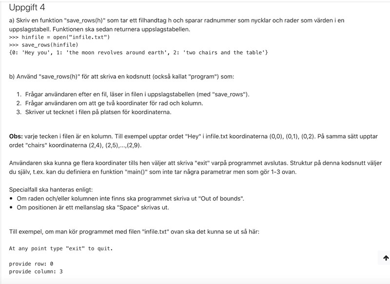 (4a fungerar nog, men den gör inte riktigt det som uppgiften säger: du skickar in ett filnamn, men det skulle vara filhandtaget h.)