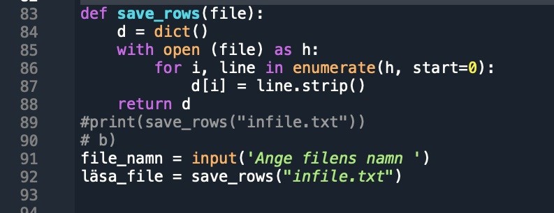 Är det något sånt du menar eller open('infile.txt', 'r')?? Jag är väldigt förvirrad om hur man ska använda save_rows. (Mitt file namn är infile.txt)