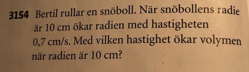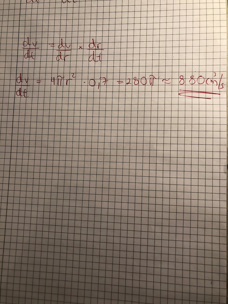 dv/dt= 0,7 cm/s Men jag tänkte att det inte kunde gälla eftersom det står cm och volymen brukar vara cm^3.