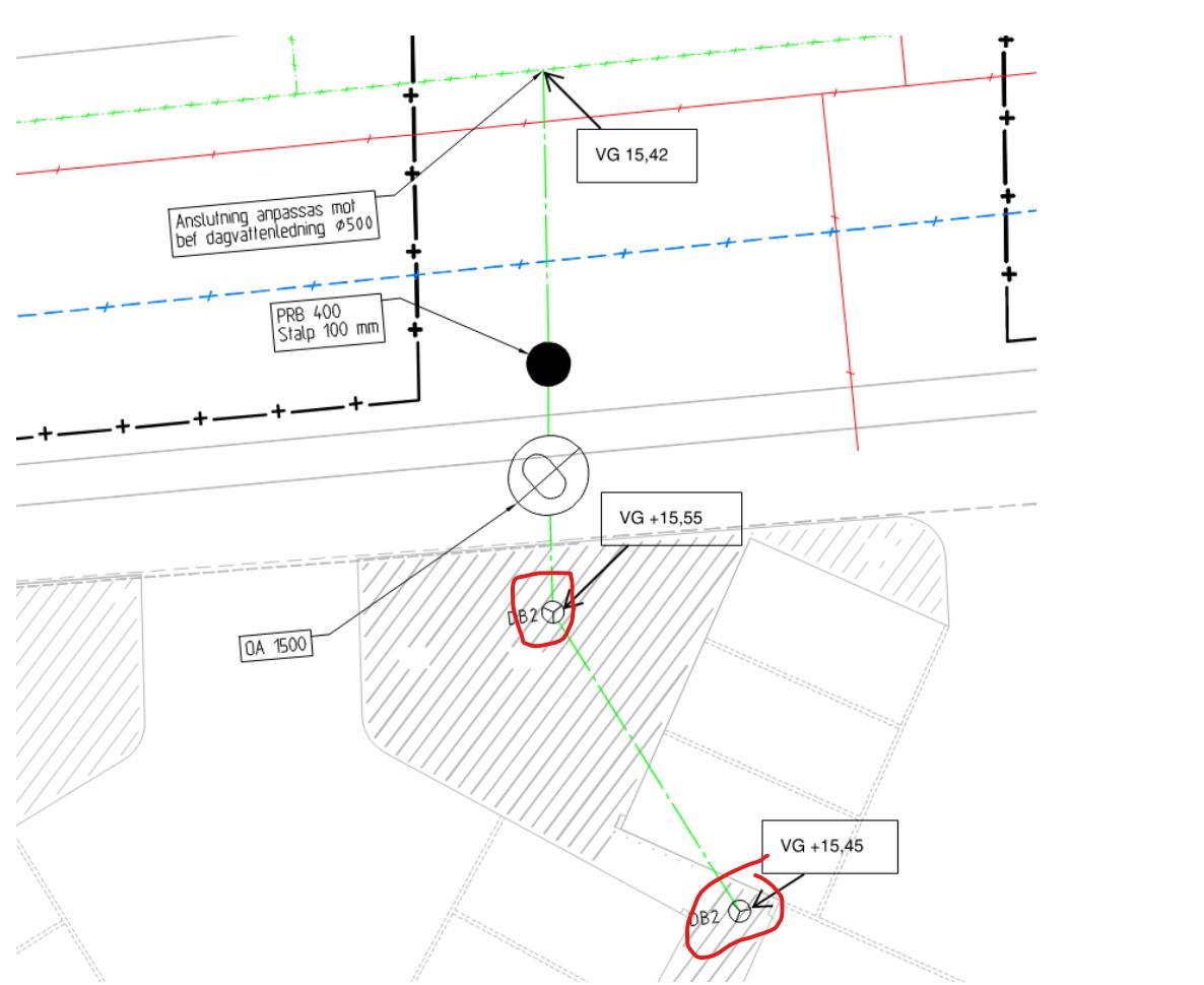 men på rintning nummer 2 så är felet på markerade symbolen alltså dräneringsbrunn ska va grön