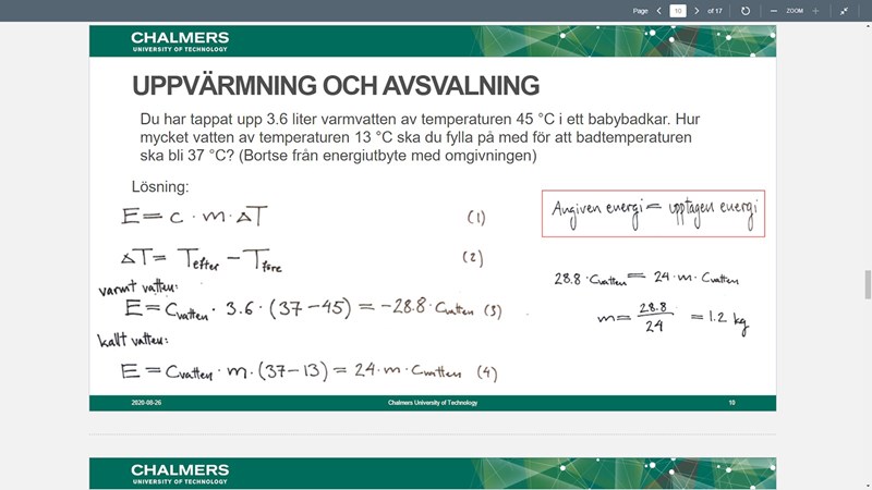Vad händer med den minus tecken framför 28.8*Cvatten i sista steget?