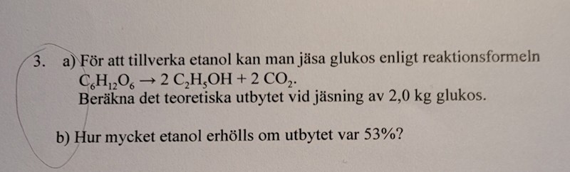 Och när du vet att det bildas 2A etanol kan räkna ut det teoretiska utbytet.
