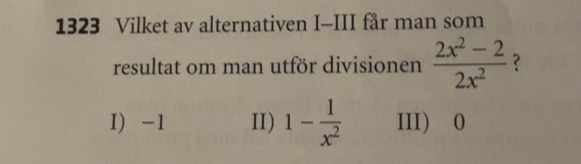 Detta gäller uppgift 1323. Tydligen är svaret enligt facit II) - jag förstår inte bara hur det är så.