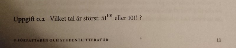 dajamanté skrev :101! Är geometriskt medelvärde (G) av talen 1 till 101, upphöjt till 101.