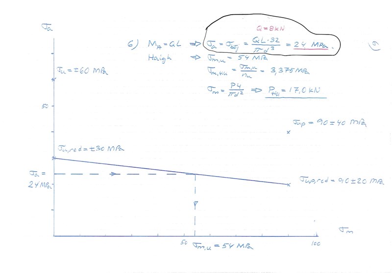 Inringat i bild: Varför sätter man att amplitudspänningen σa är den konstanta spänningen 24 MPa? Borde det inte vara mittspänningen σm istället? Jag tänker eftersom man alltid ska sätta den tidsberoende delen till amplitud och den konstanta till mittspänning?